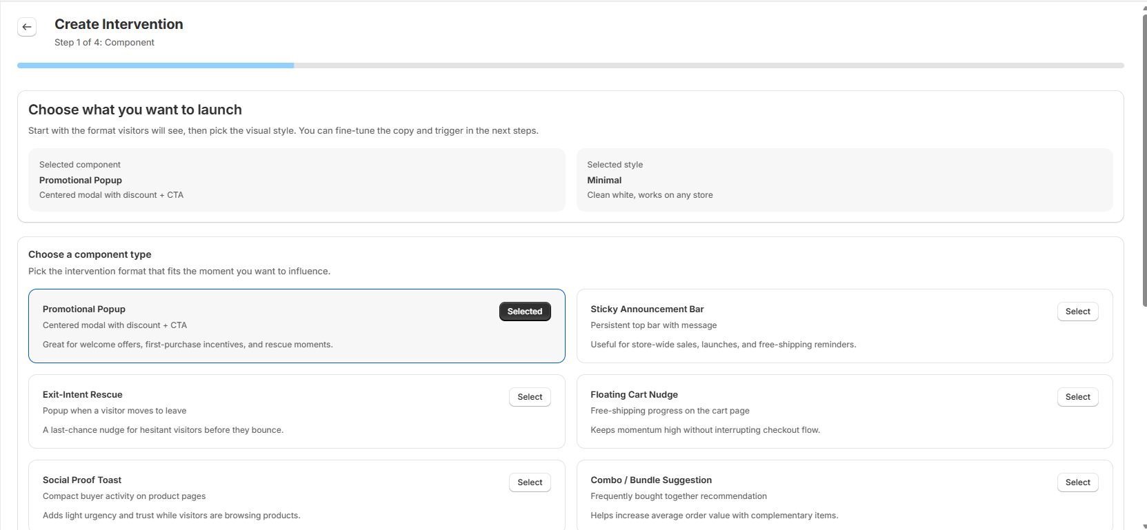 Once an intervention is active, it fires automatically on the storefront whenever a visitor matches its trigger conditions — no further action required.